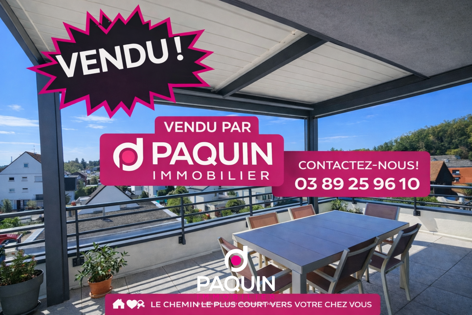 L'appartement dispose d'une terrasse à double expostion avec vue dégagée sur Sierentz, une pergola bioclimatique.